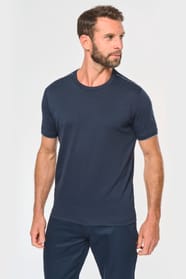50% polyester/25% cotton/25% viscose. Jersey fabric. Anti-pilling treated. Round neckline. Straight fit. Tone-on-tone shoulder-to-shoulder tape. Twin-needle stitch at cuffs and hem. Tubular finish at bottom hem and cuffs. Tear-off brand label for ease of rebranding. (Example of branding, sold blank).